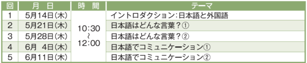 開講日時: 5月14日(木)~6月11日(木)(全5回)
