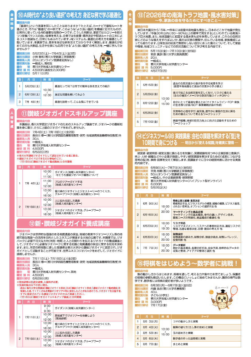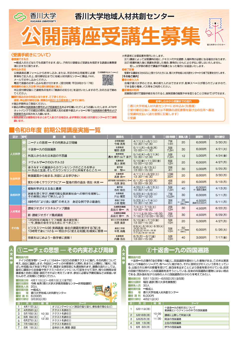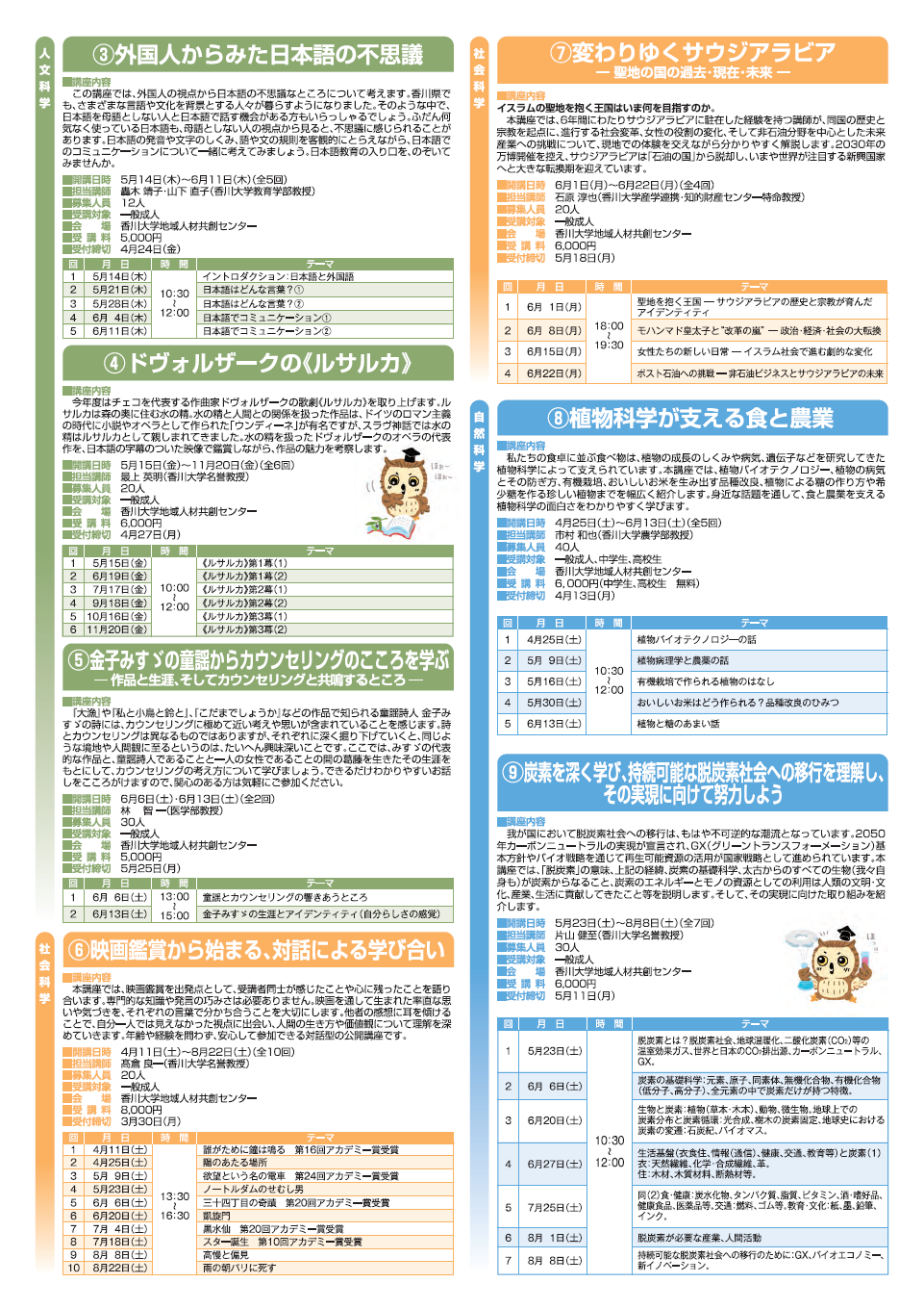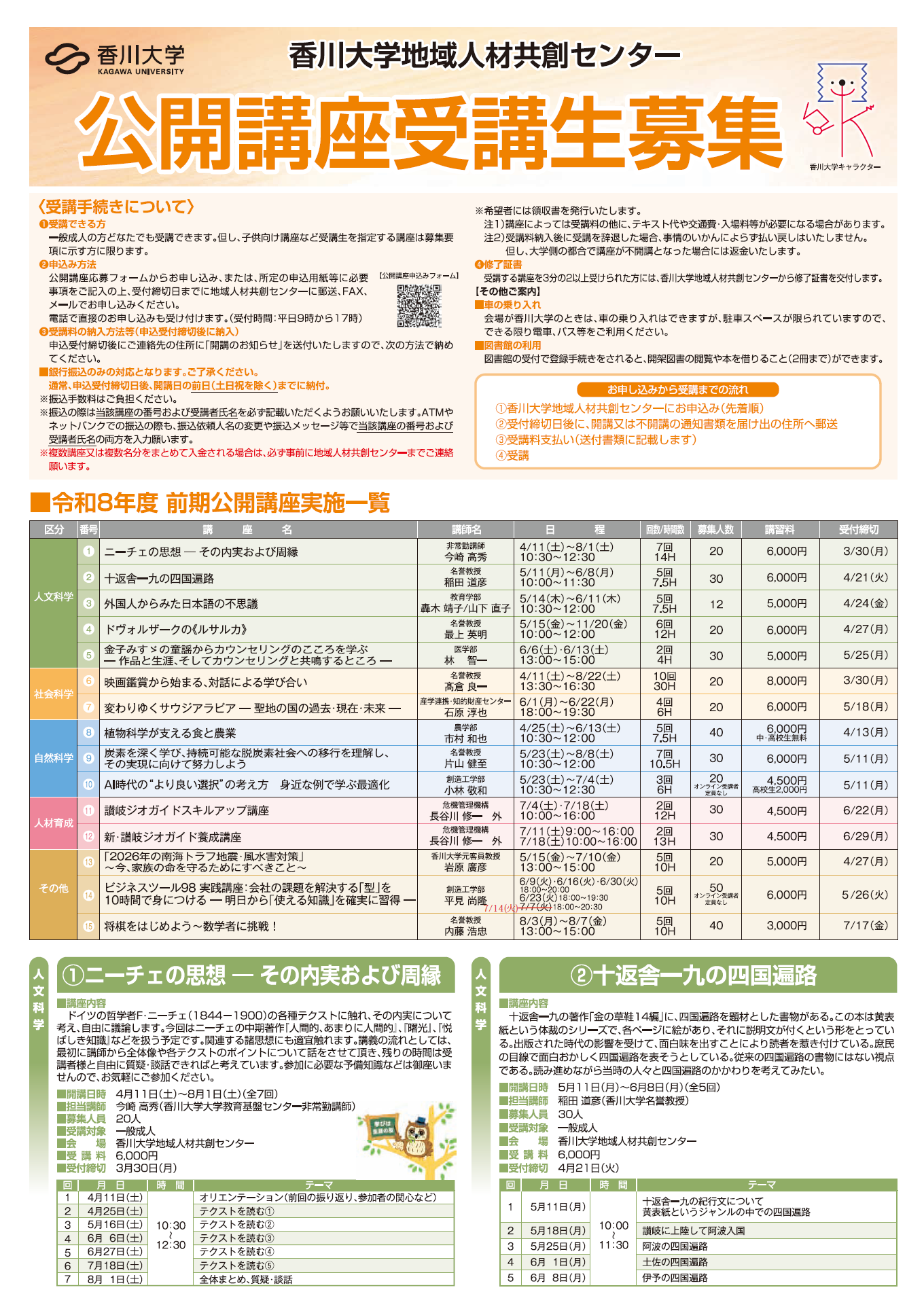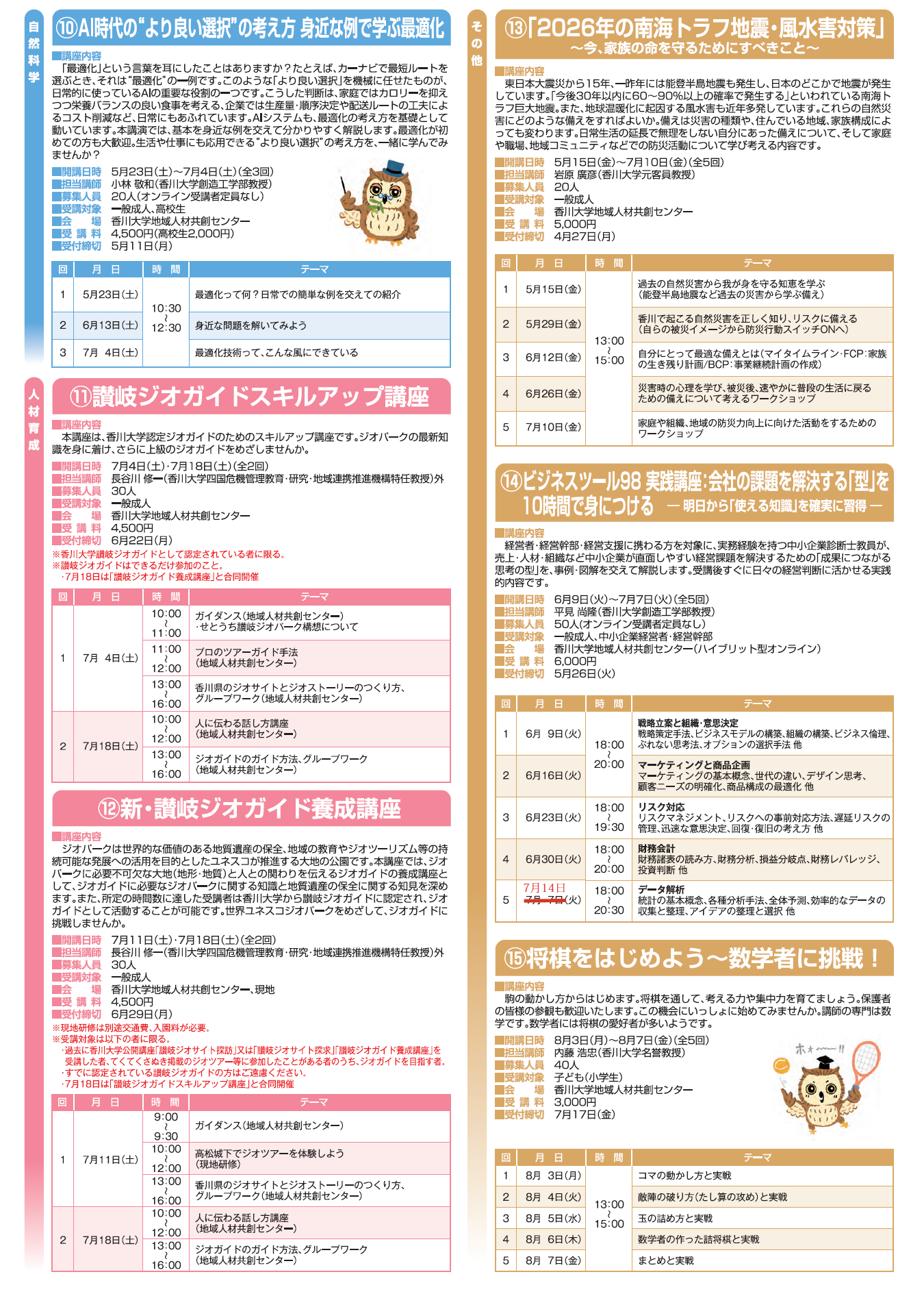 香川大学地域人材共創センターでは、毎年前期後期の半期ごとに、公開講座を開講しています。